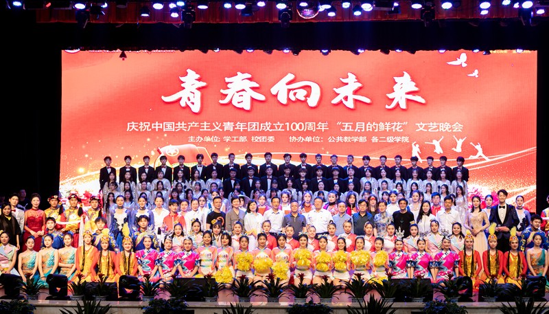 5月26日晚7:00,民族剧院座无虚席。湖南民族职业学院庆祝中国共产主义青年团建团100周年“青春向未来”喜迎二十大五月的鲜花文艺晚会在此隆重举行。学校党委书记刘朝晖、院长陈美中率全体在家院领导出席。